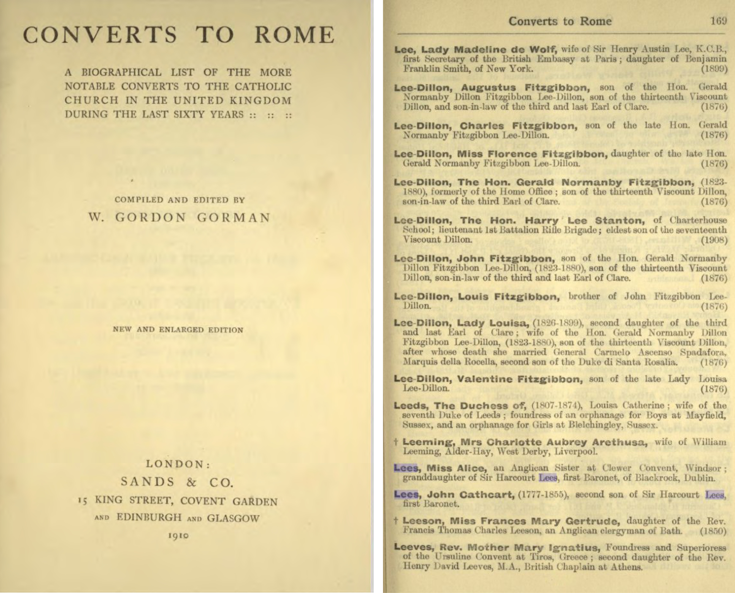 by Gordon-Gorman, W. (1910). Published by Sands and Co., London p. 169. John Cathcart Lees, brother of the late Rev. Sir Harcourt Lees, Baronet, of Dublin
