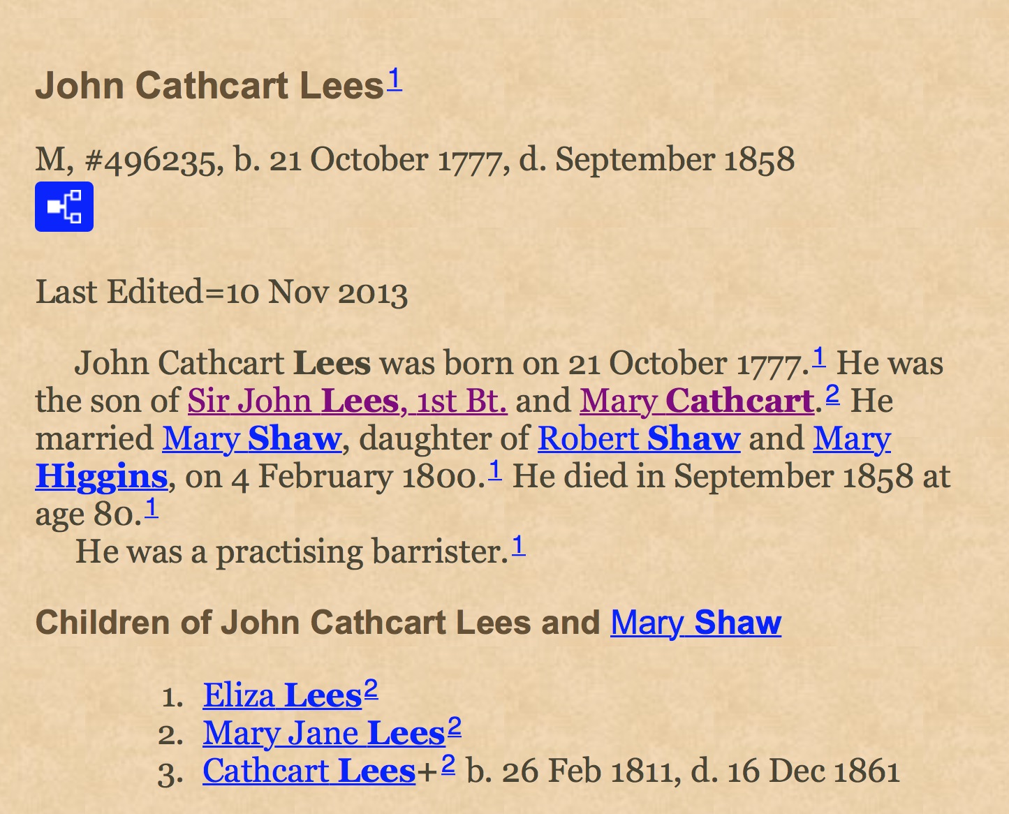 The Peerage: John Cathcart Lees