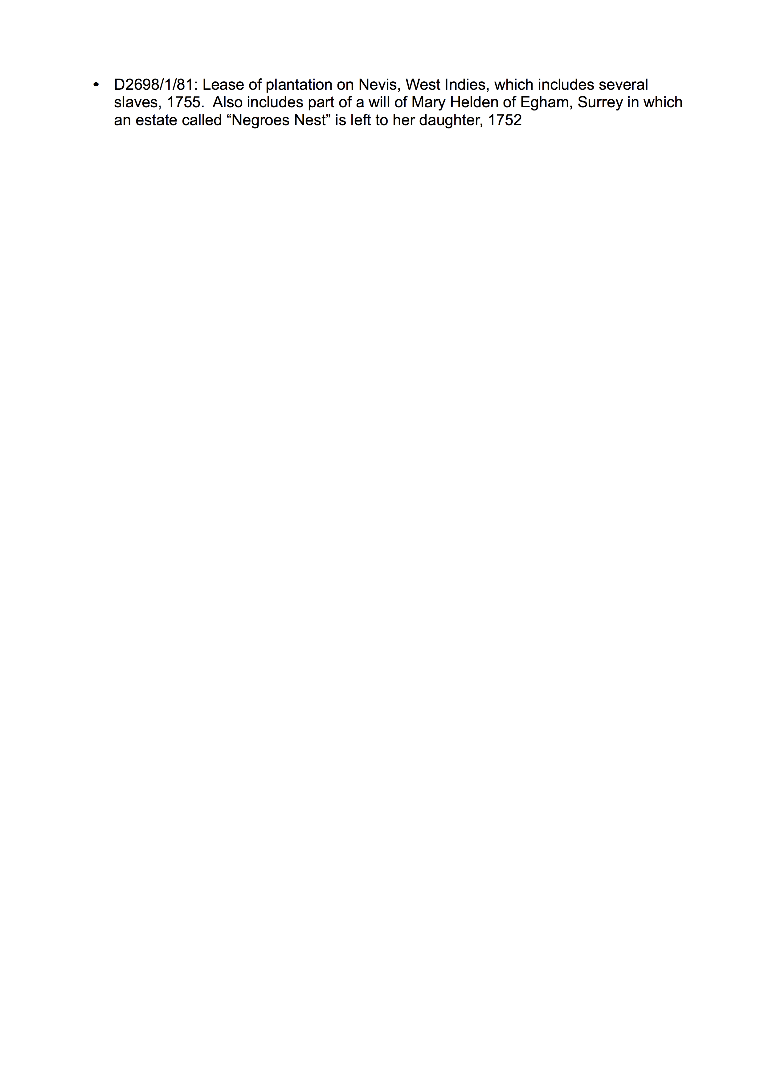 Lease of plantation and will of Mary Helden
