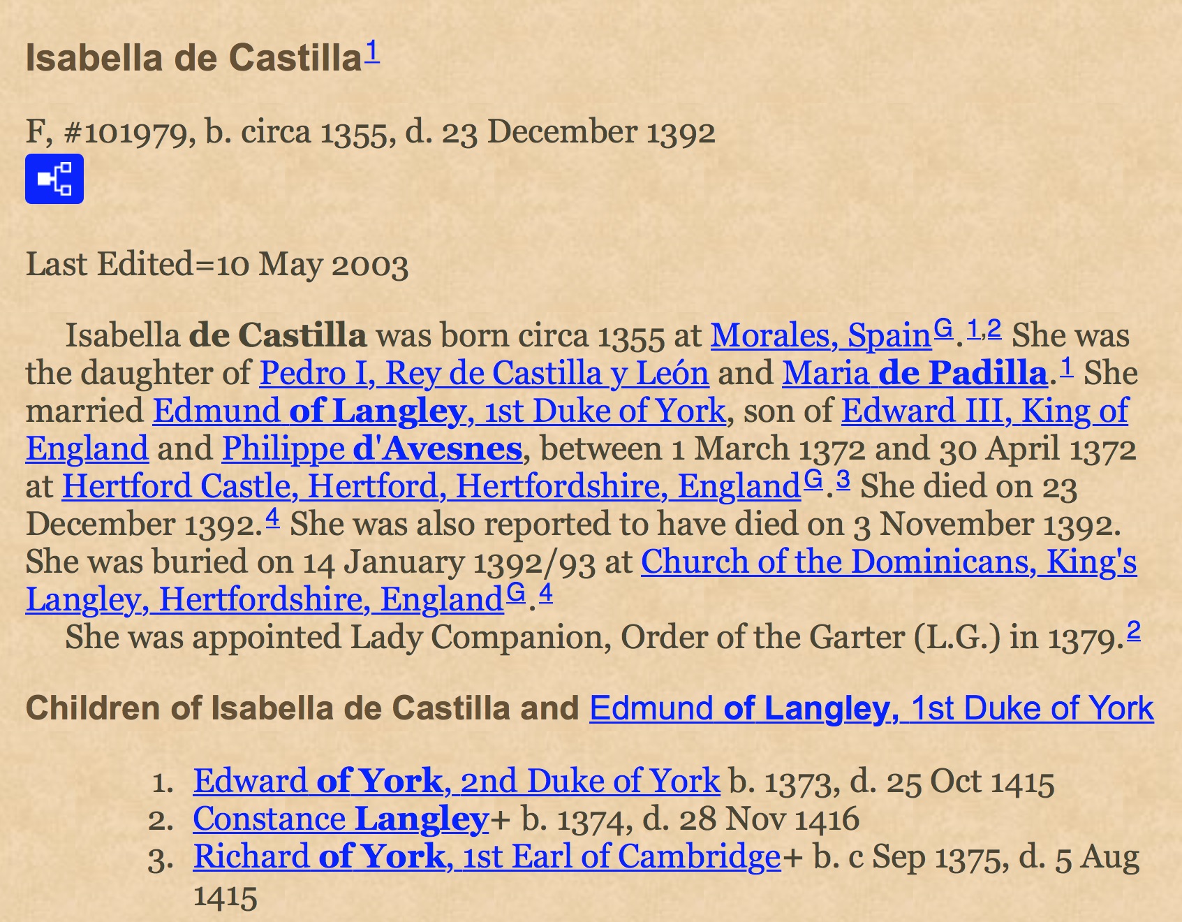 Grandmother of Lady Isabel Plantagenet Countess of Essex