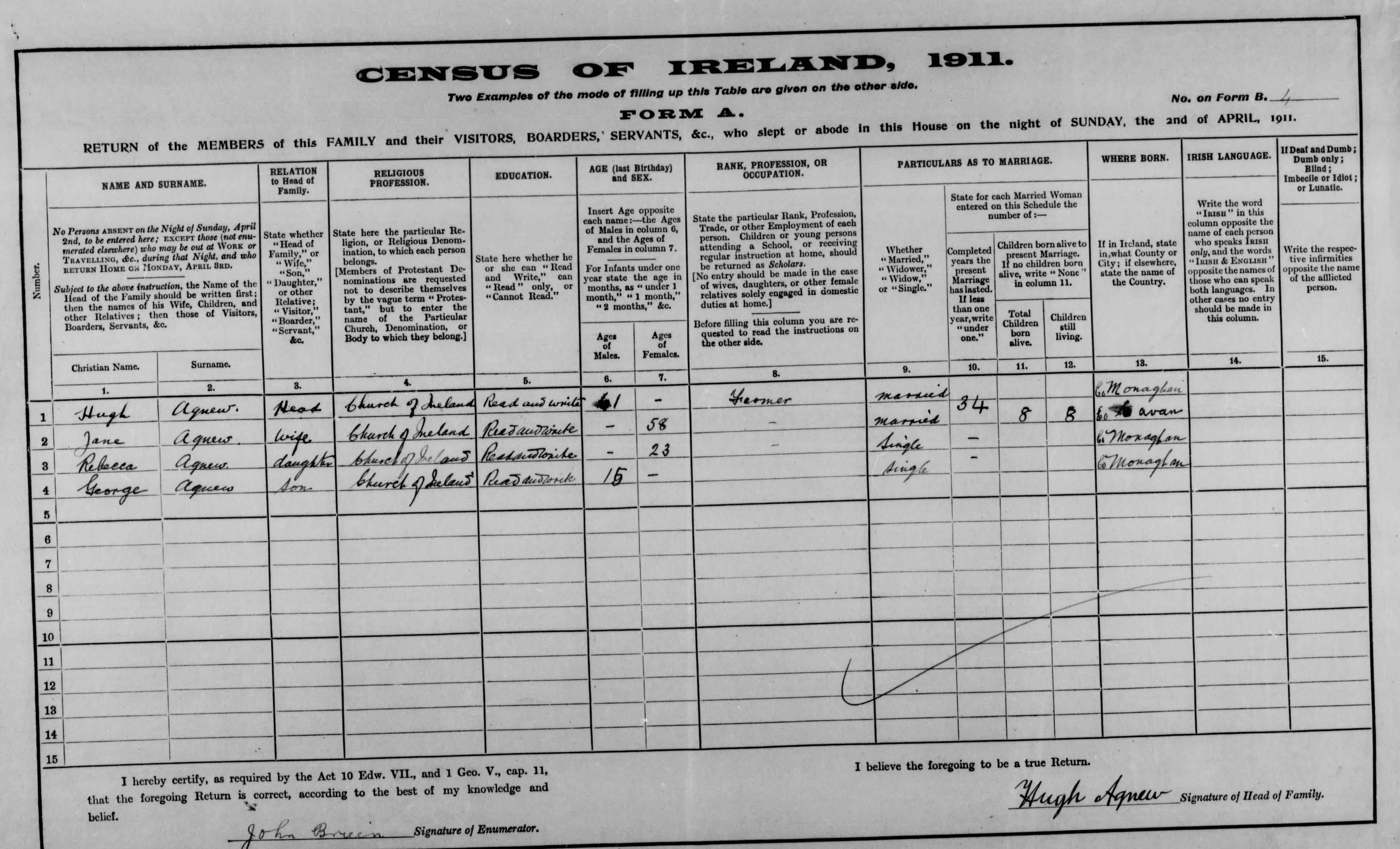 Census of Ireland 1911. Lattycrossan (sic), Currin, Clones, Co. Monaghan